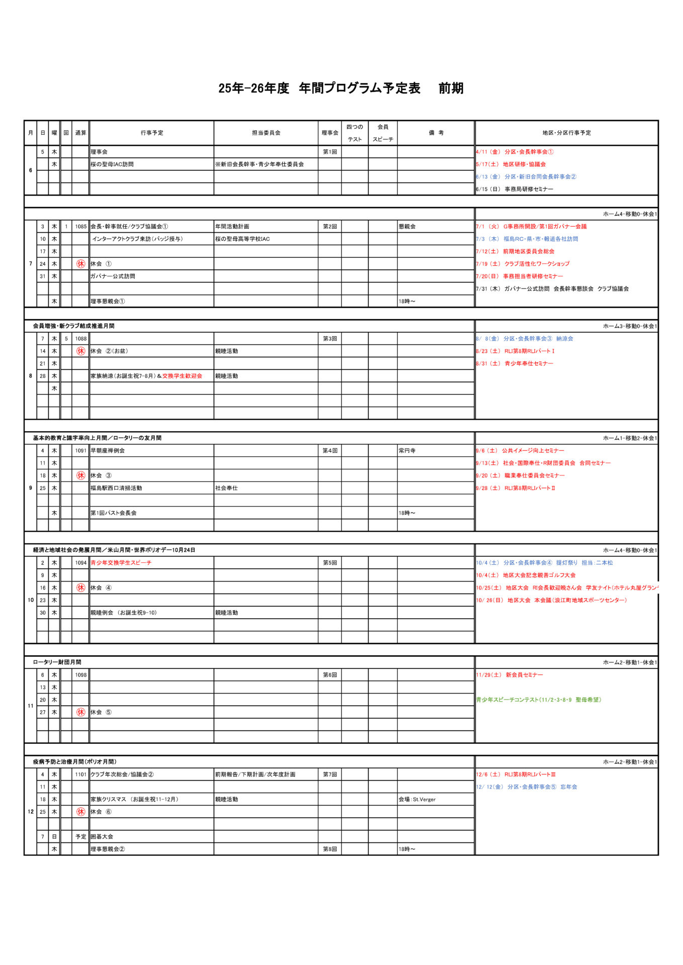 2025年-26年度 年間例会プログラム